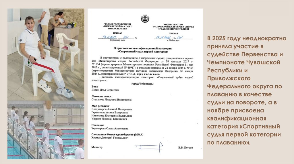 по плаванию (1984). Заслуженный работник физической культуры