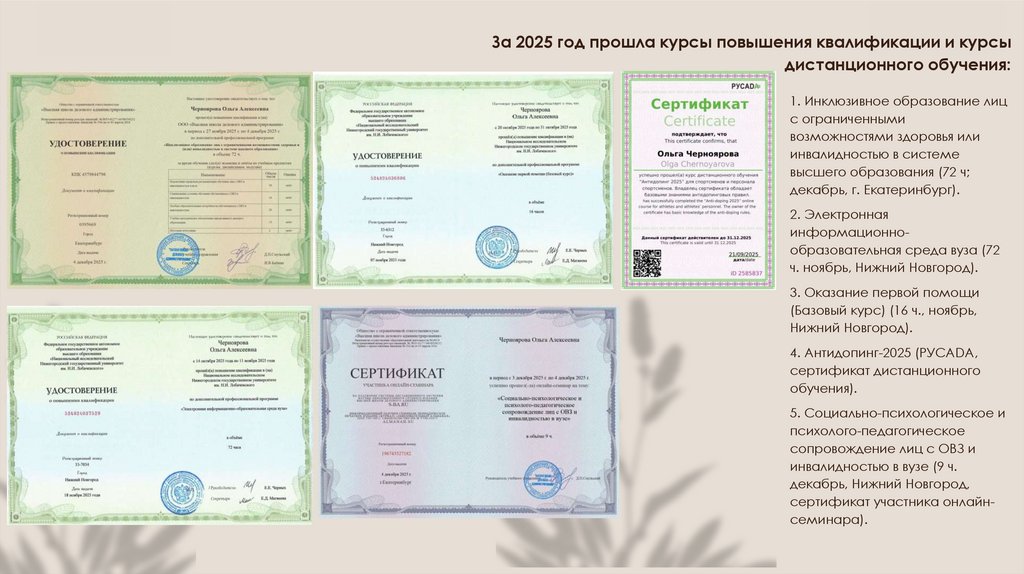 За 2025 год прошла курсы повышения квалификации