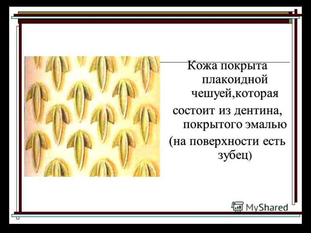 Тело покрыто плакоиднойчешуей. Каждая пластинка