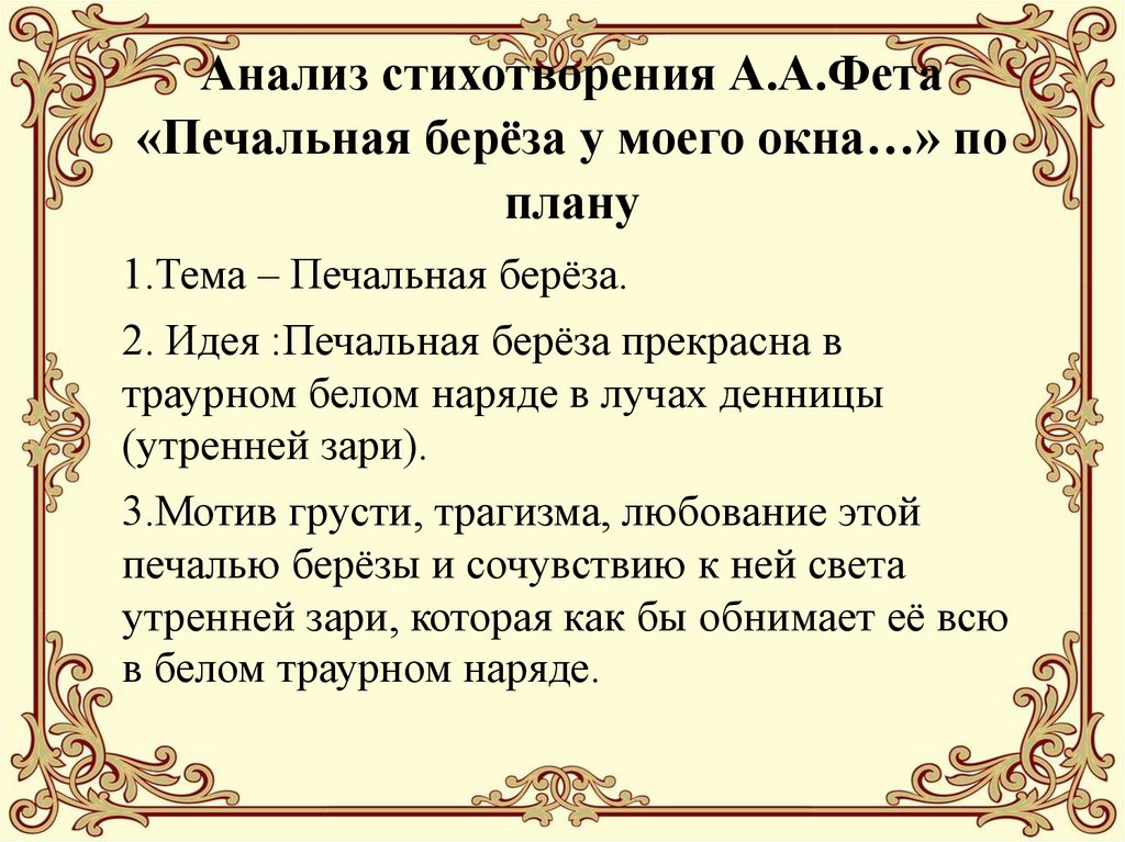Анализ стихотворения А.А.Фета«Печальная берёза у моего окна…» по