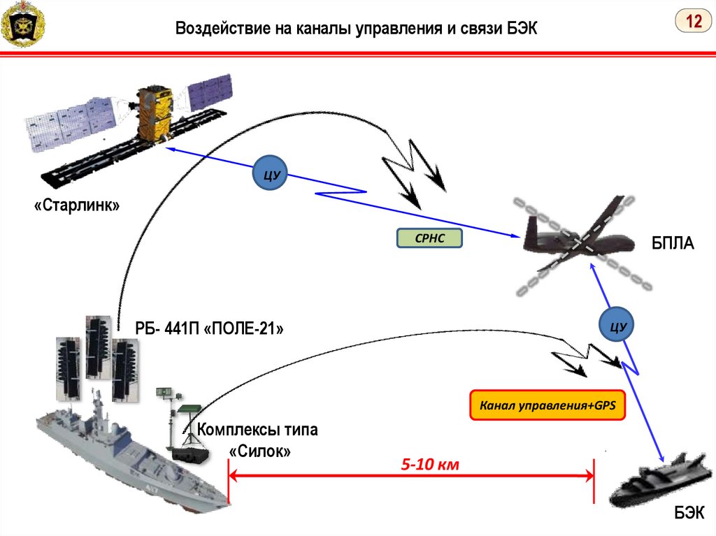 управления безэкипажных катеров противника средствами РЭБ боевыми
