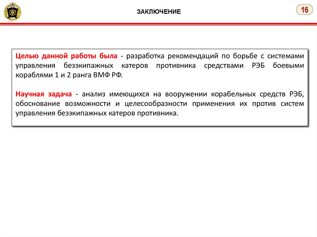 Научная задача: анализ имеющихся на вооружении корабельных средств РЭБ, как