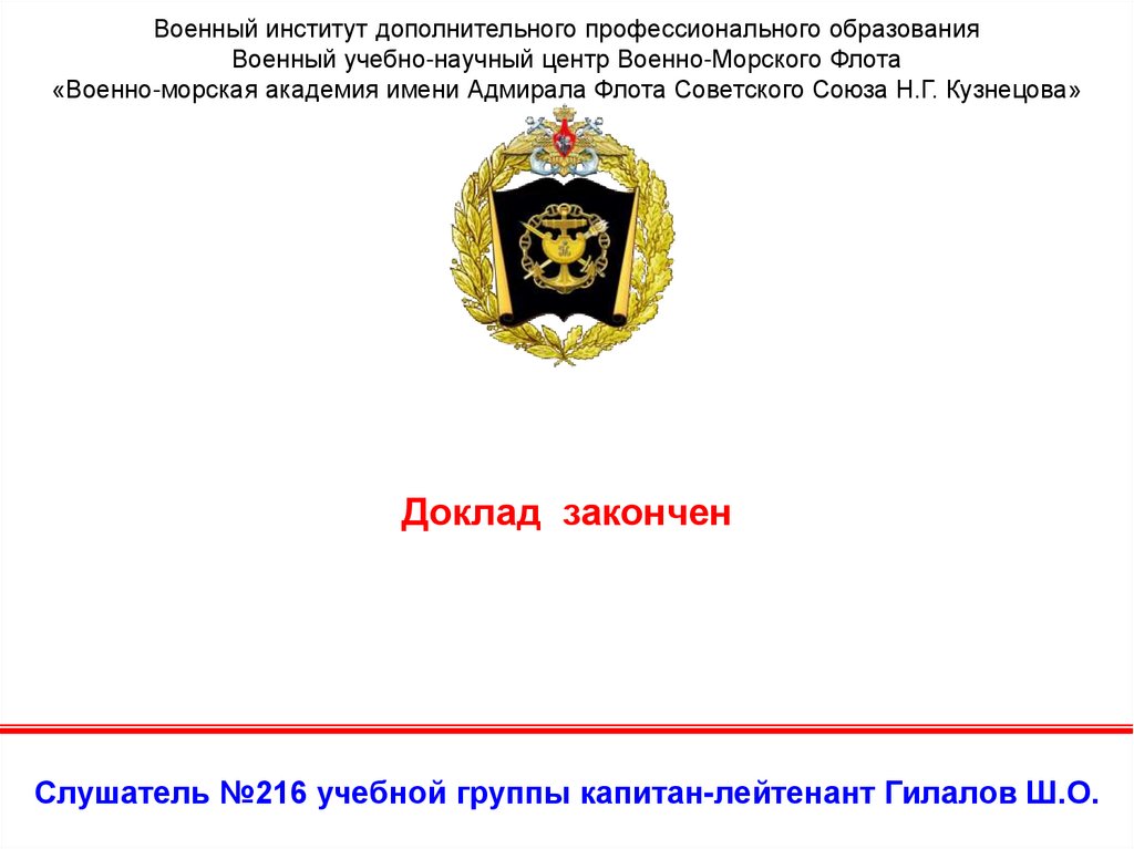 Слушатель учебной группы №216 капитан-лейтенант Гбур А.Р.