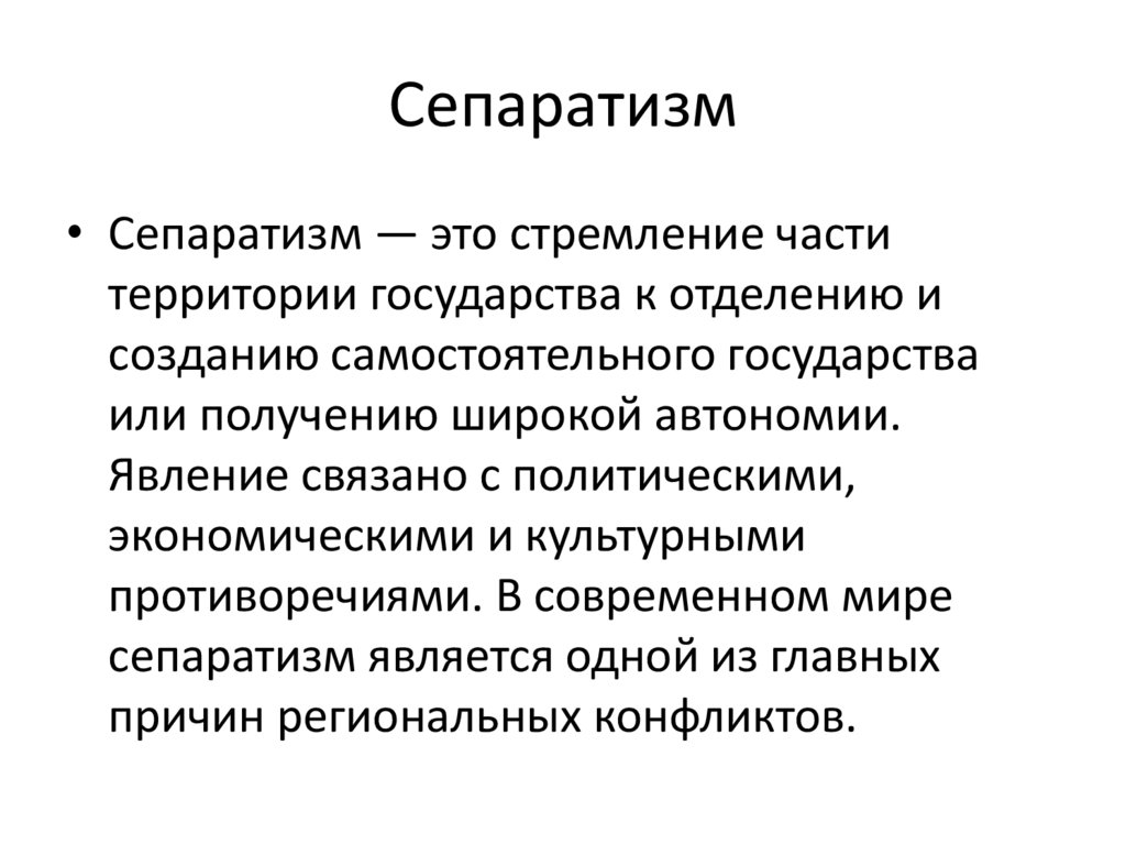 Сепаратизм• Сепаратизм — это стремление части