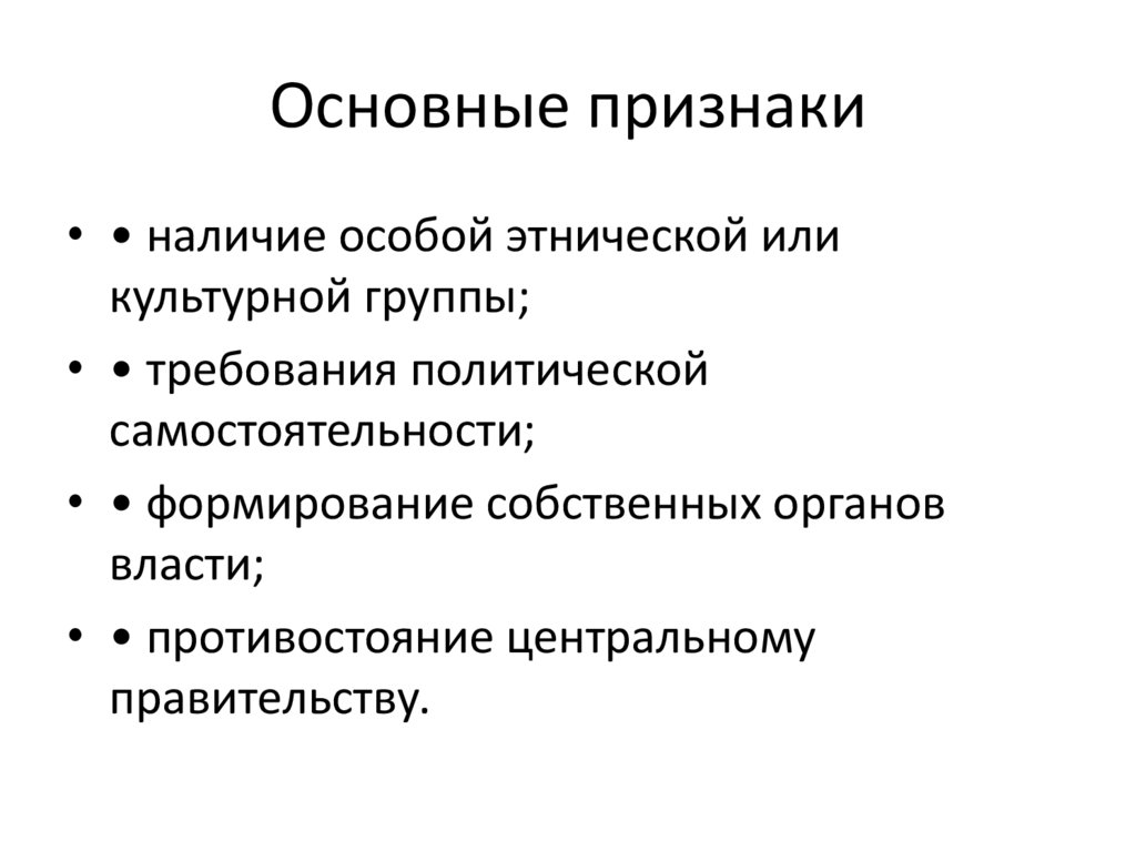 Основные признаки• • наличие особой этнической или