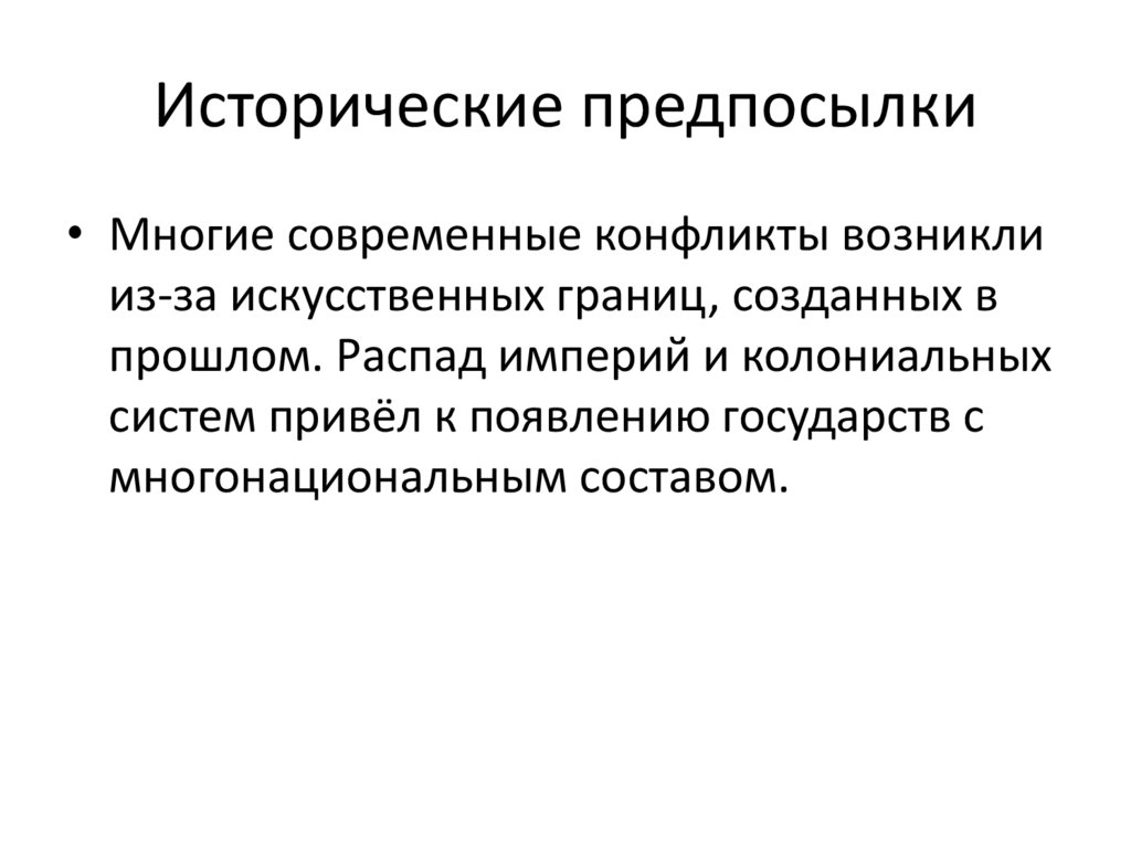 Исторические предпосылки• Многие современные конфликты возникли