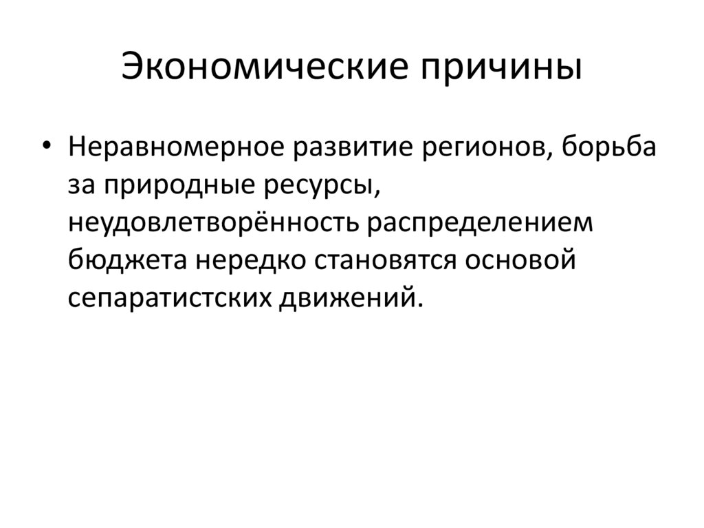 Экономические причины• Неравномерное развитие регионов, борьба