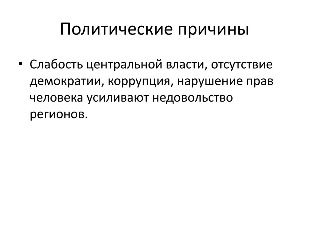 Политические причины• Слабость центральной власти, отсутствие