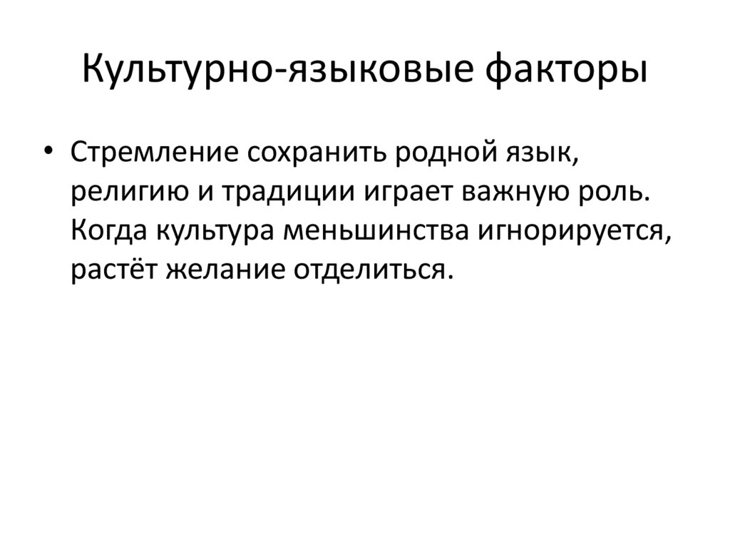Культурно-языковые факторы• Стремление сохранить родной язык,