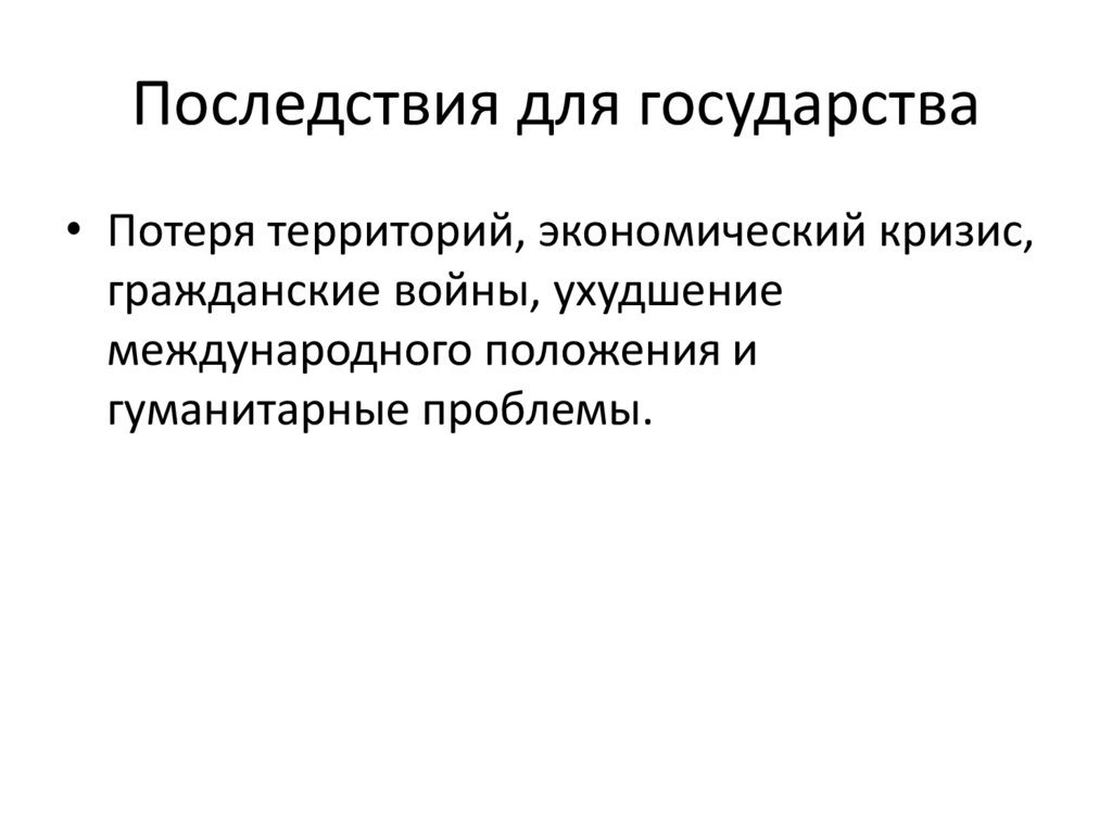 Последствия для государства• Потеря территорий, экономический кризис,