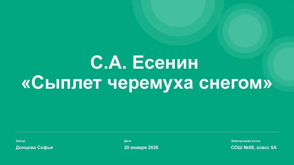 С.А. Есенин«Сыплет черемуха снегом»