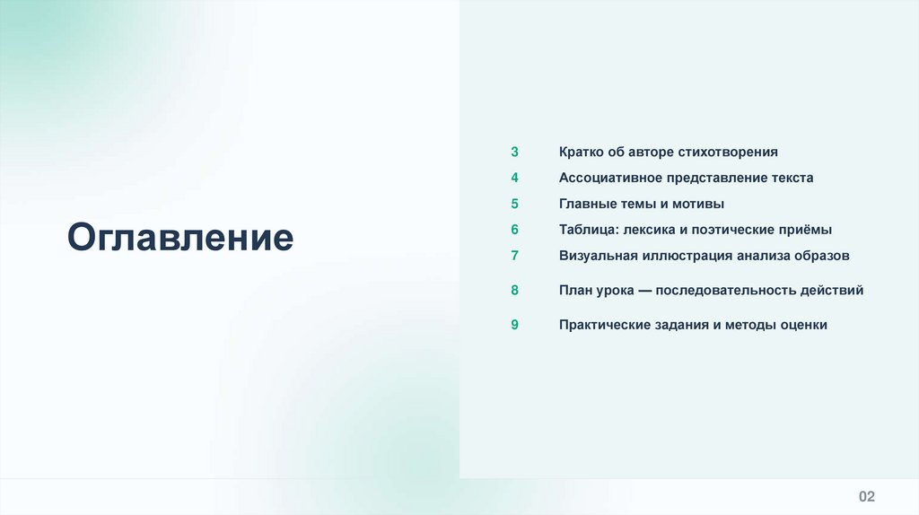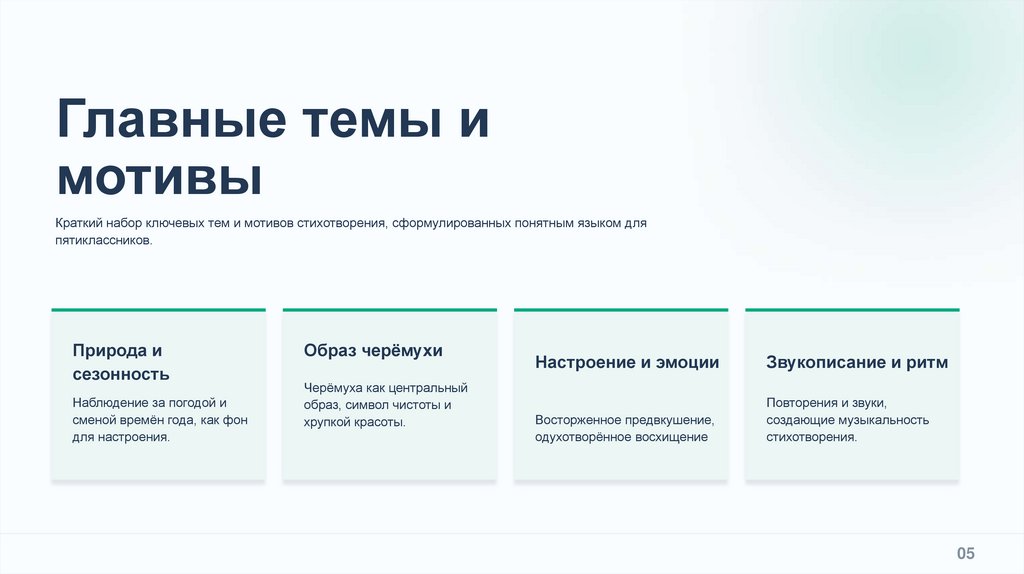 Краткий набор ключевых тем и мотивов стихотворения, сформулированных понятным языком для