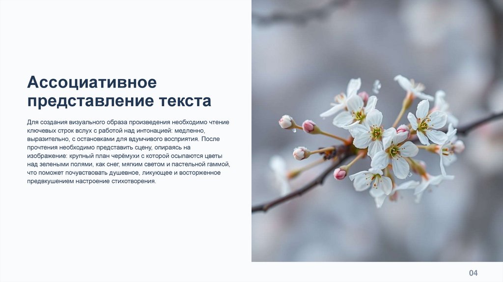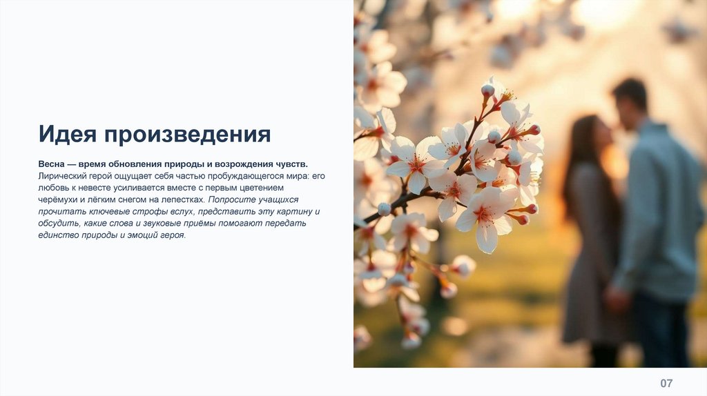 черёмухи и лёгким снегом на лепестках. Попросите учащихся