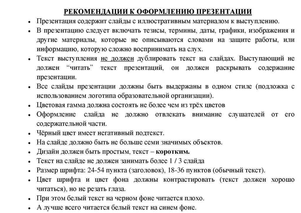 РЕКОМЕНДАЦИИ К ОФОРМЛЕНИЮ ПРЕЗЕНТАЦИИ
