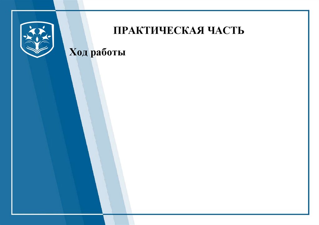 ПРАКТИЧЕСКАЯ ЧАСТЬХод работы