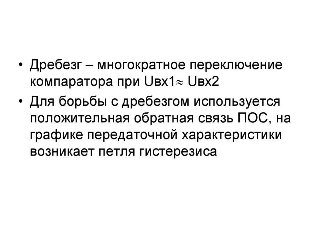 • Дребезг – многократное переключениекомпаратора при Uвх1 Uвх2