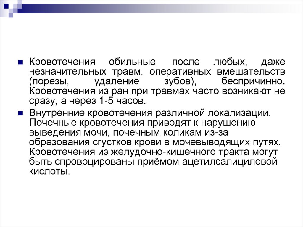 Кровотечения обильные, после любых, даженезначительных травм, оперативных вмешательств