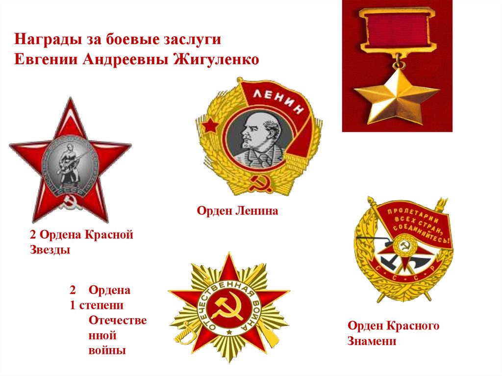 Награды за боевые заслугиЕвгении Андреевны Жигуленко