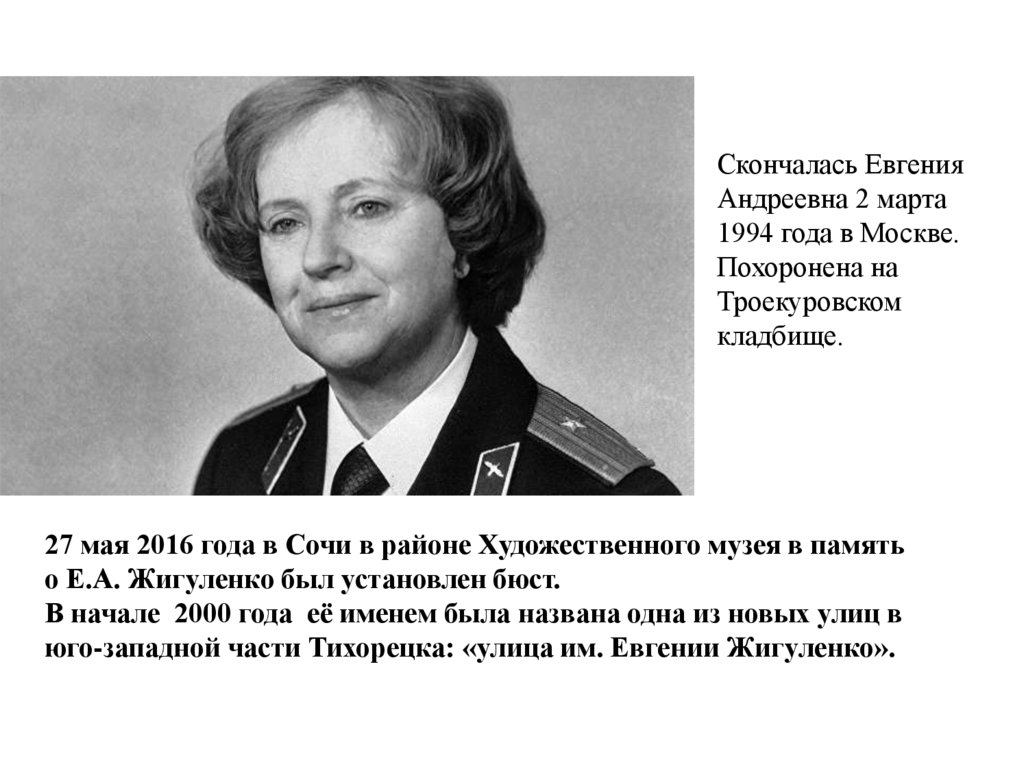 1. Евгения Андреевна Жигуленко Герой советского Союза