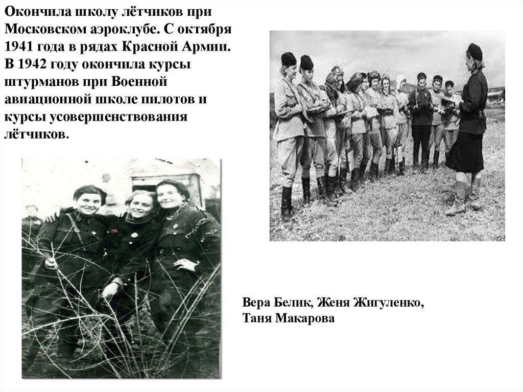 Окончила школу лётчиков приМосковском аэроклубе. С октября