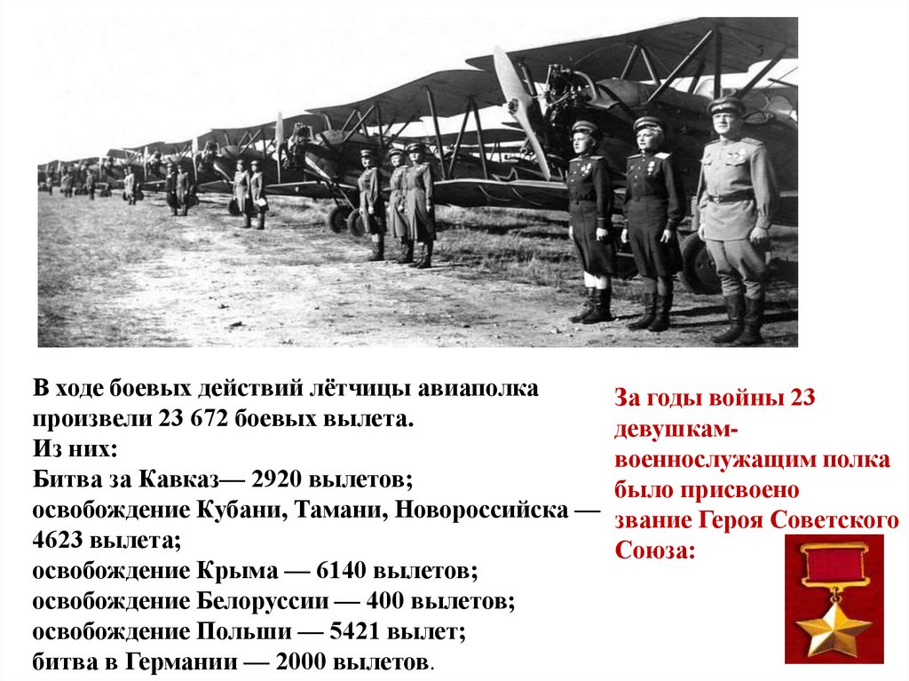В ходе боевых действий лётчицы авиаполкаЗа годы войны 23