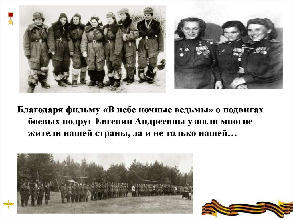 Благодаря фильму «В небе ночные ведьмы» о подвигахбоевых подруг Евгении Андреевны узнали многие
