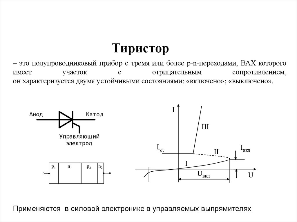 Тиристор– это полупроводниковый прибор с тремя или более p-n-переходами, ВАХ которого