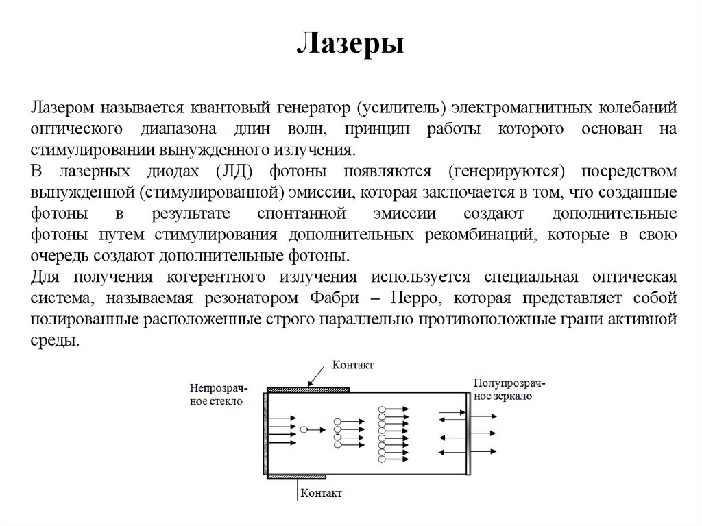 ЛазерыЛазером называется квантовый генератор (усилитель) электромагнитных колебаний