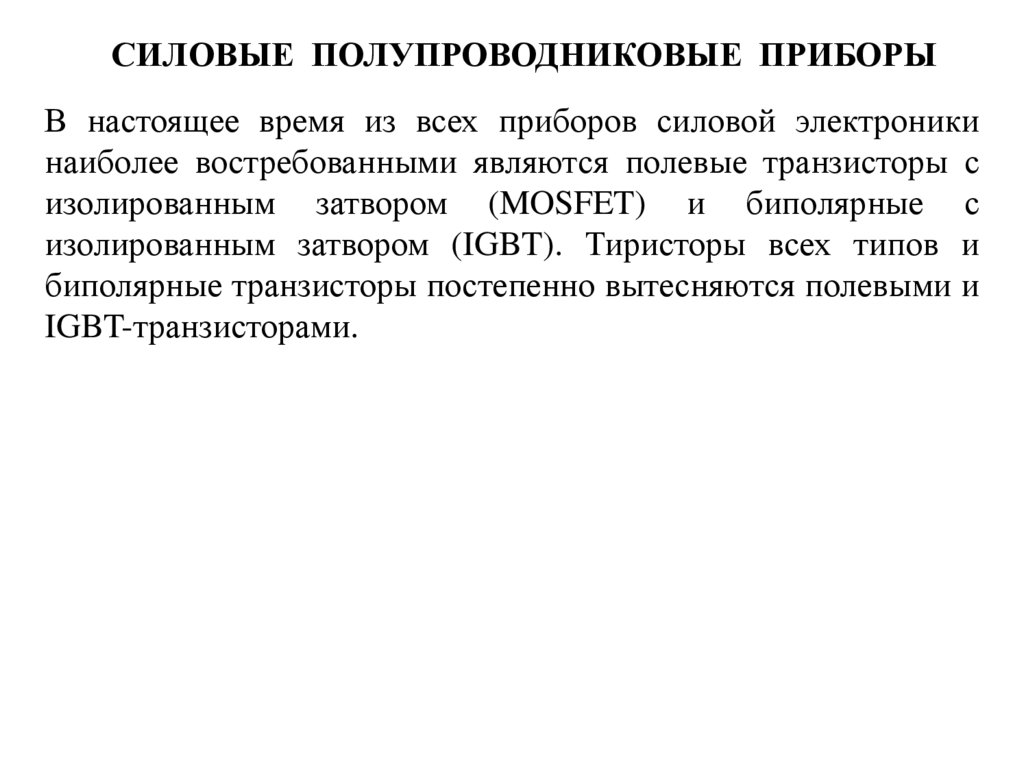 СИЛОВЫЕ ПОЛУПРОВОДНИКОВЫЕ ПРИБОРЫВ настоящее время из всех приборов силовой электроники
