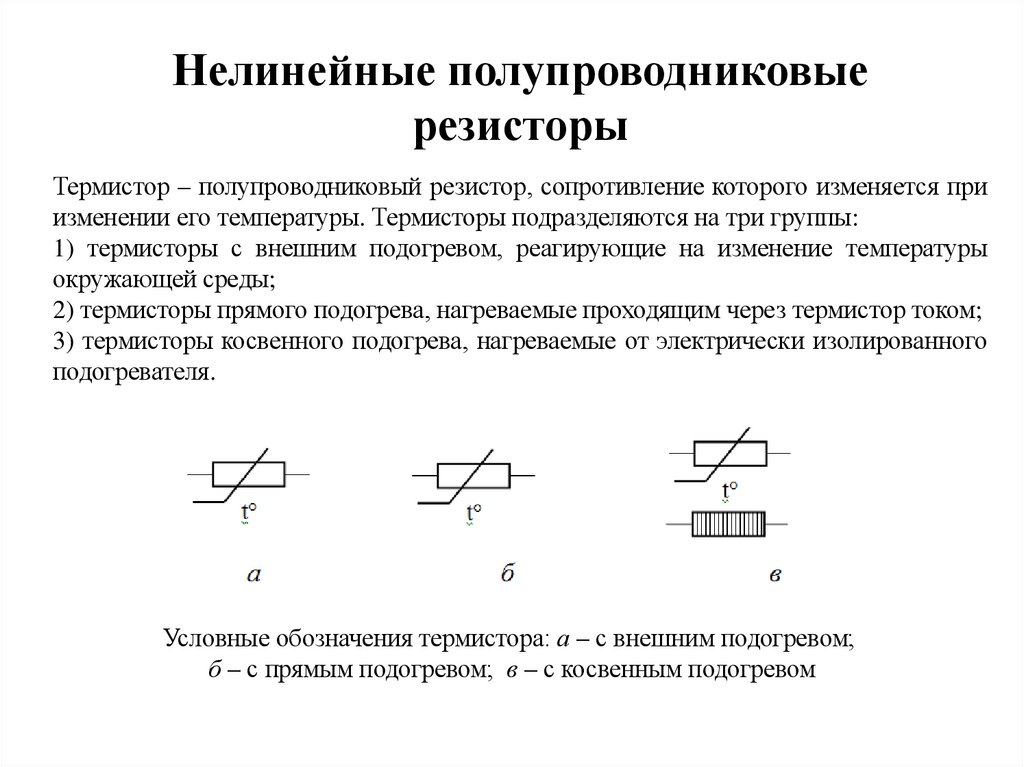 Условные обозначения термистора: а – с внешним подогревом;