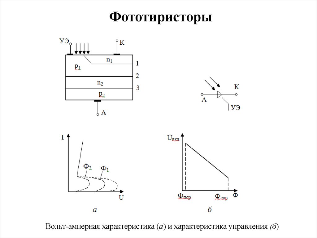 ФототиристорыВольт-амперная характеристика (а) и характеристика управления (б)