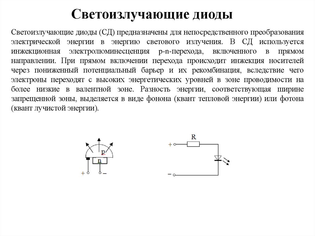Светоизлучающие диодыСветоизлучающие диоды (СД) предназначены для непосредственного преобразования