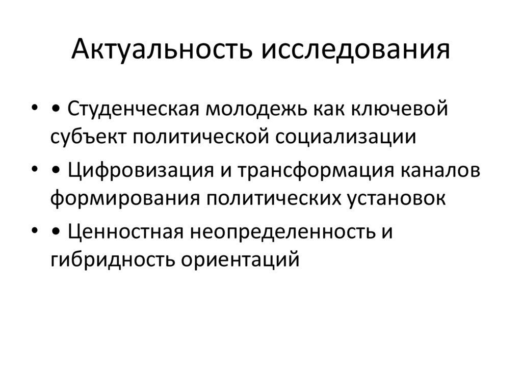 Актуальность исследования• • Студенческая молодежь как ключевой