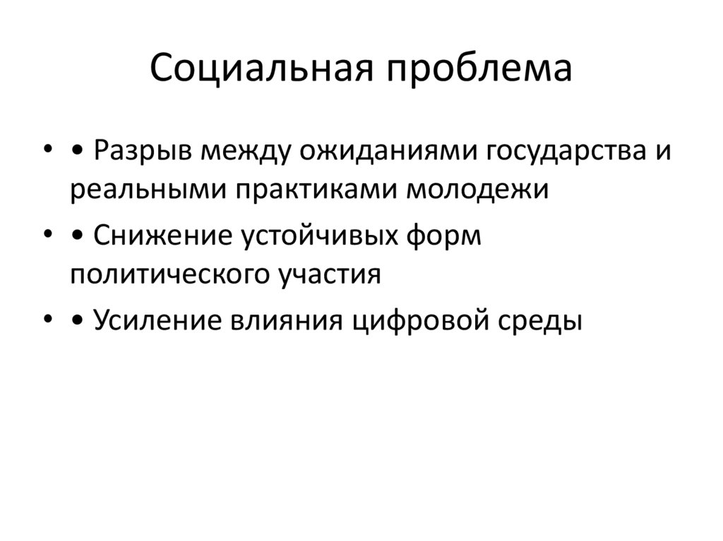 Социальная проблема• • Разрыв между ожиданиями государства и