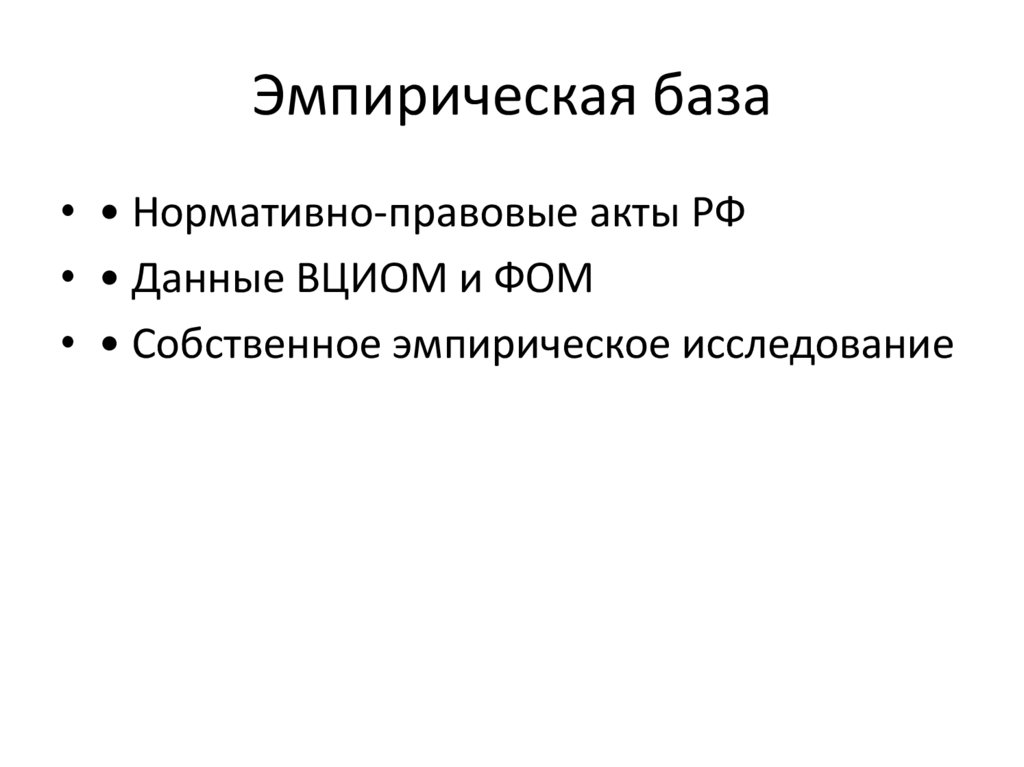 Эмпирическая база• • Нормативно-правовые акты РФ