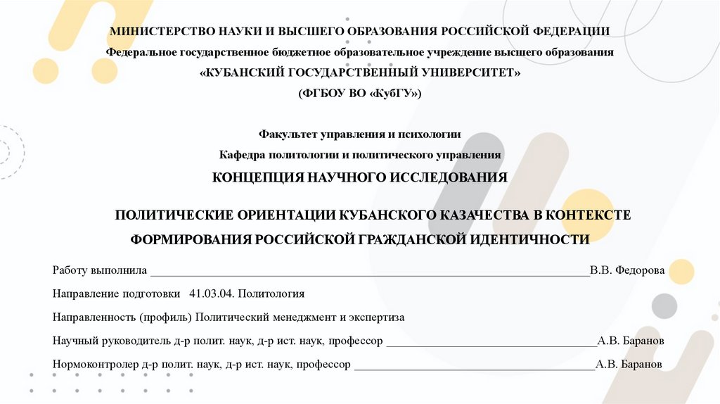 (ФГБОУ ВО «КубГУ»)