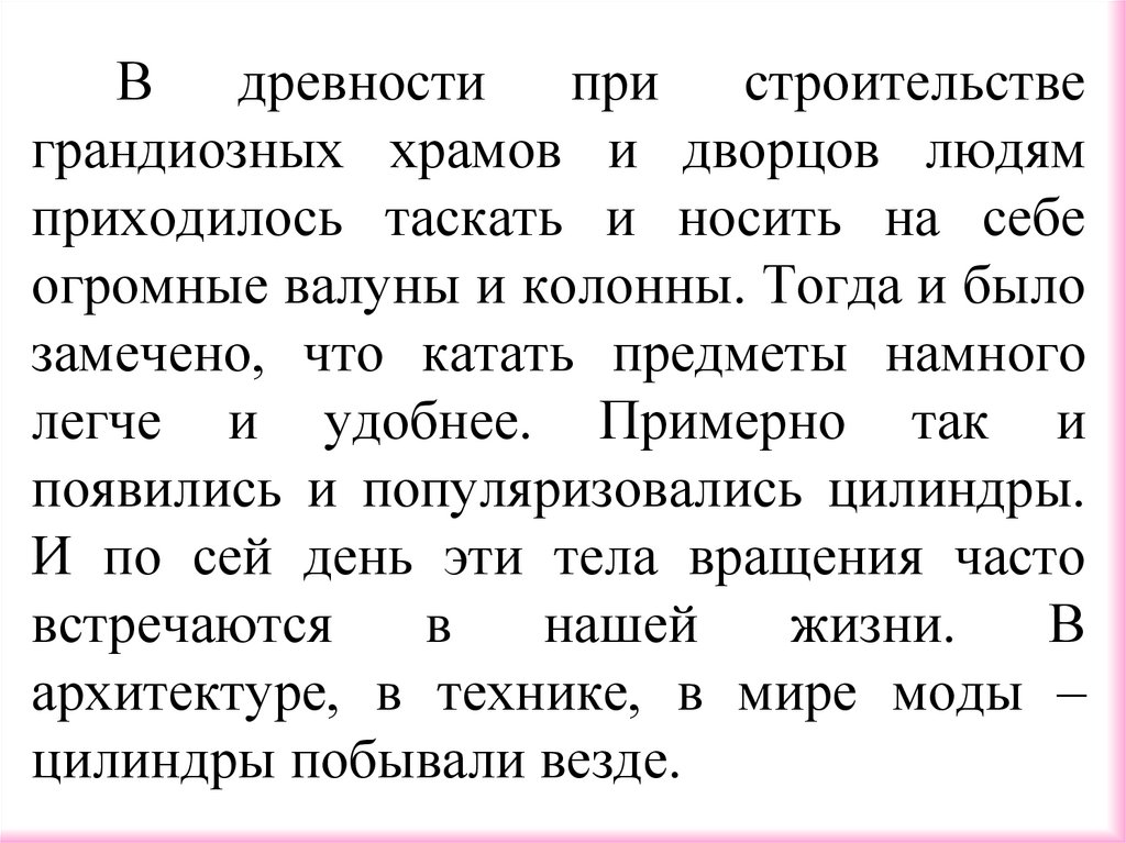 Цилиндры внашей жизни.