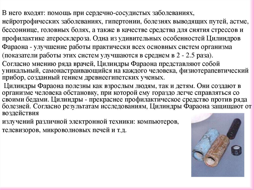 болезней. Согласно результатам исследованиям, Цилиндры Фараона защищают от