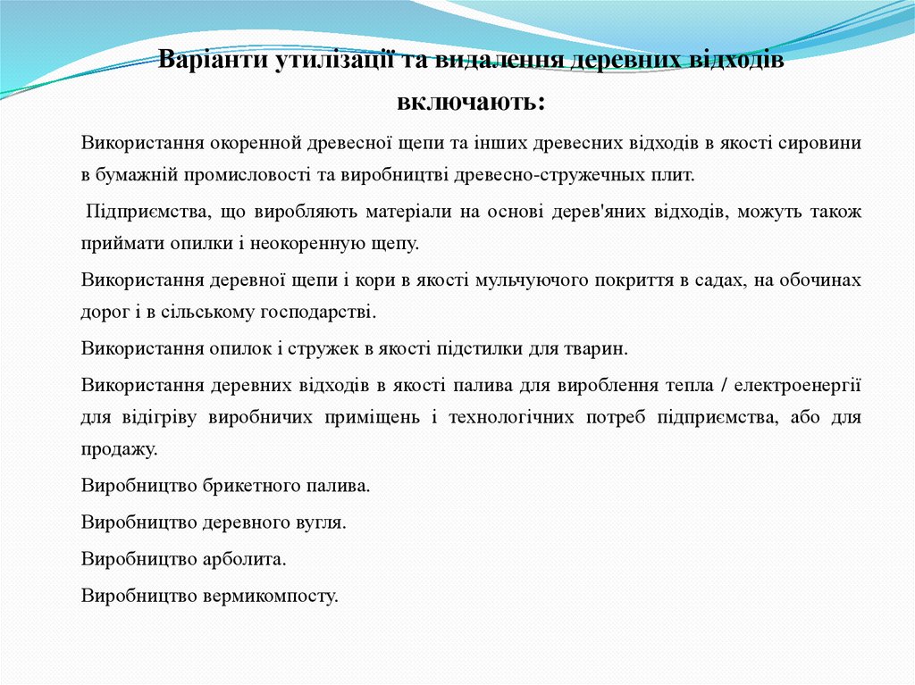 д) обладнання з утилізації деревних відходів, відходів деревини, тирси є ідеальним рішенням для організації
