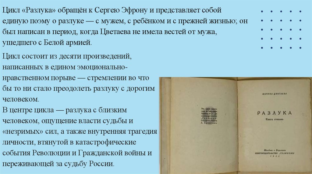 10. Годы Гражданской войны стали для Цветаевой временем тяжёлых испытаний: с 1918 года Сергей Эфрон служил в Добровольческой армии,