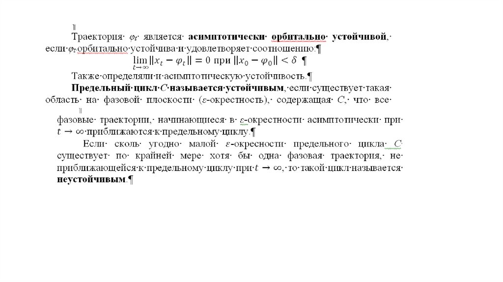 • Ранее были рассмотрены асимптотические виды устойчивости – фокус или