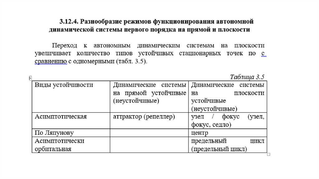 • Для нелинейных динамических систем на плоскости могу появится самые