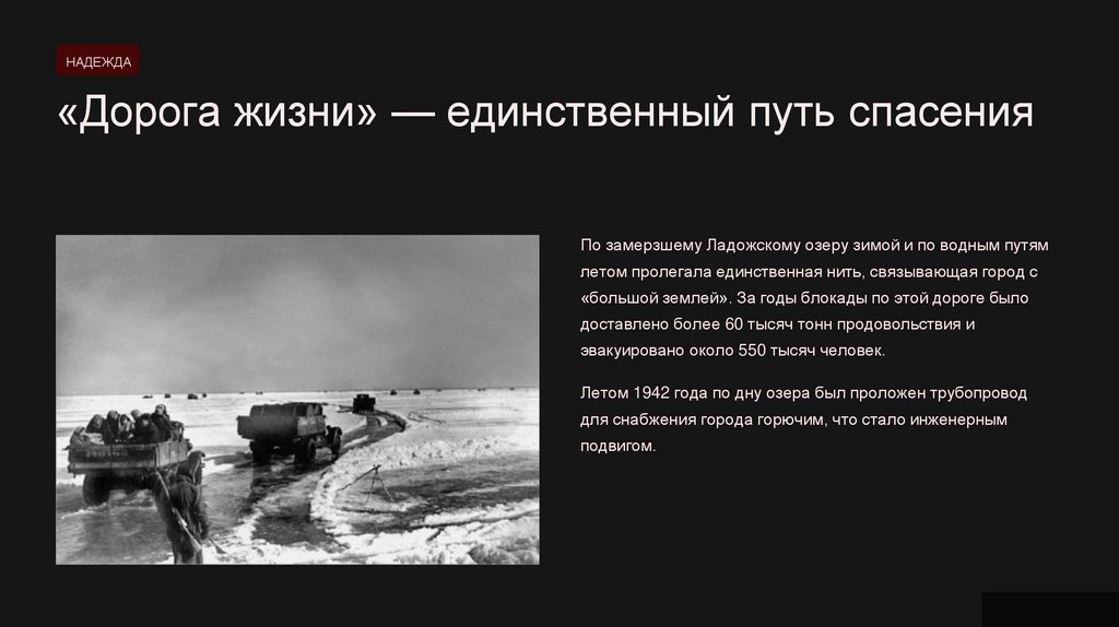 НАДЕЖДА«Дорога жизни» — единственный путь спасения