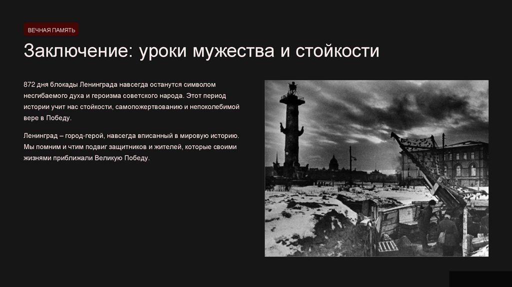 ВЕЧНАЯ ПАМЯТЬЗаключение: уроки мужества и стойкости