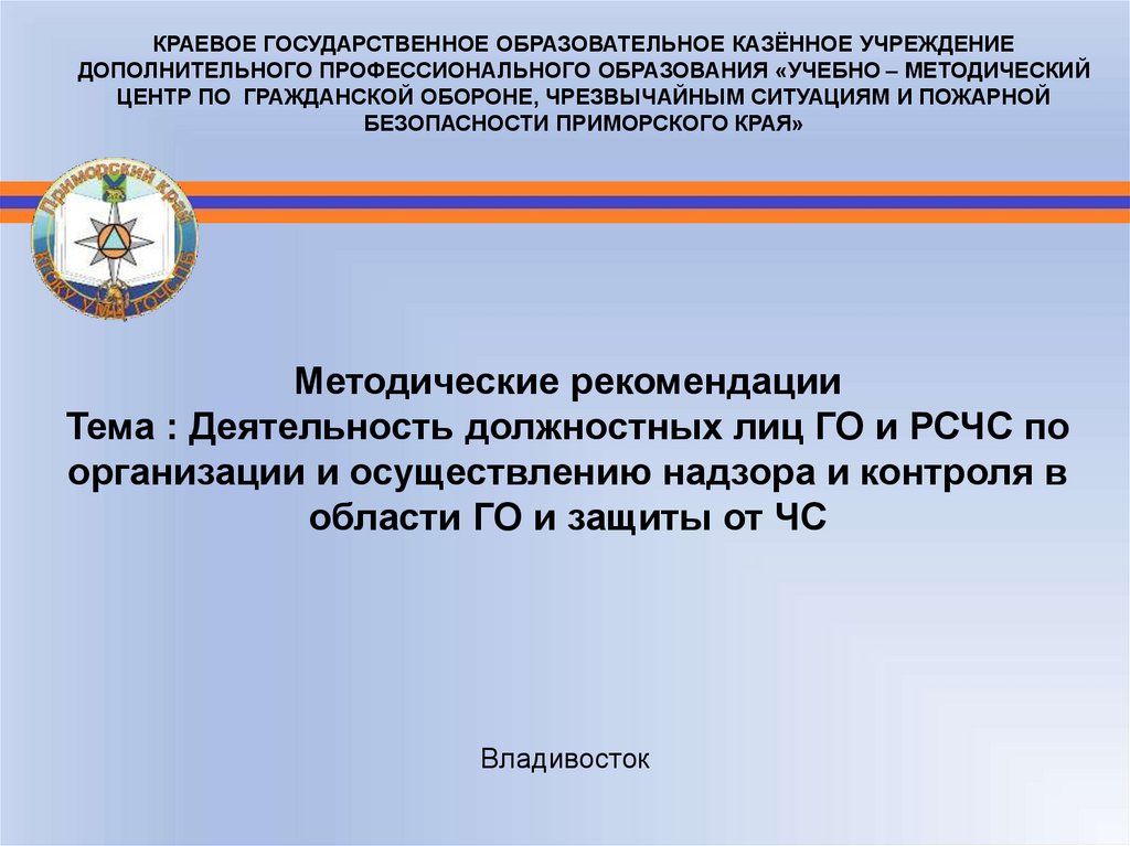 Тема : Деятельность должностных лиц ГО и РСЧС по