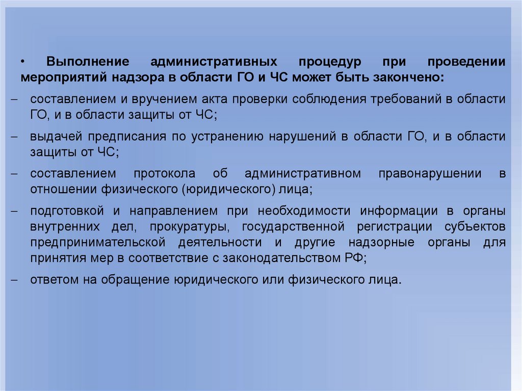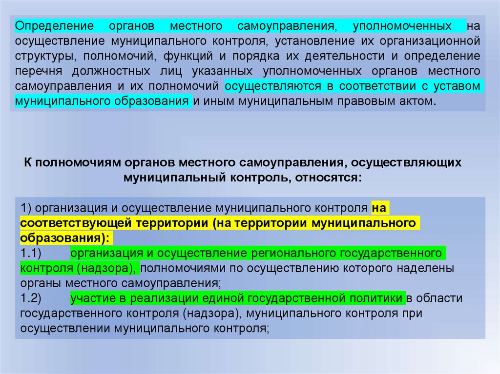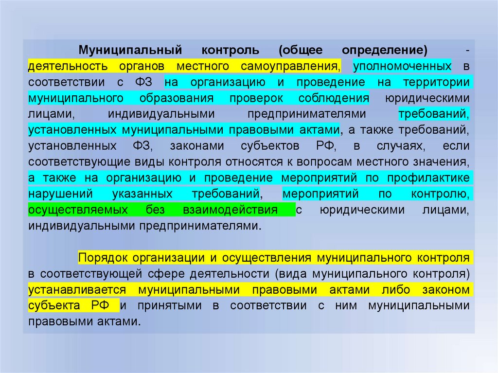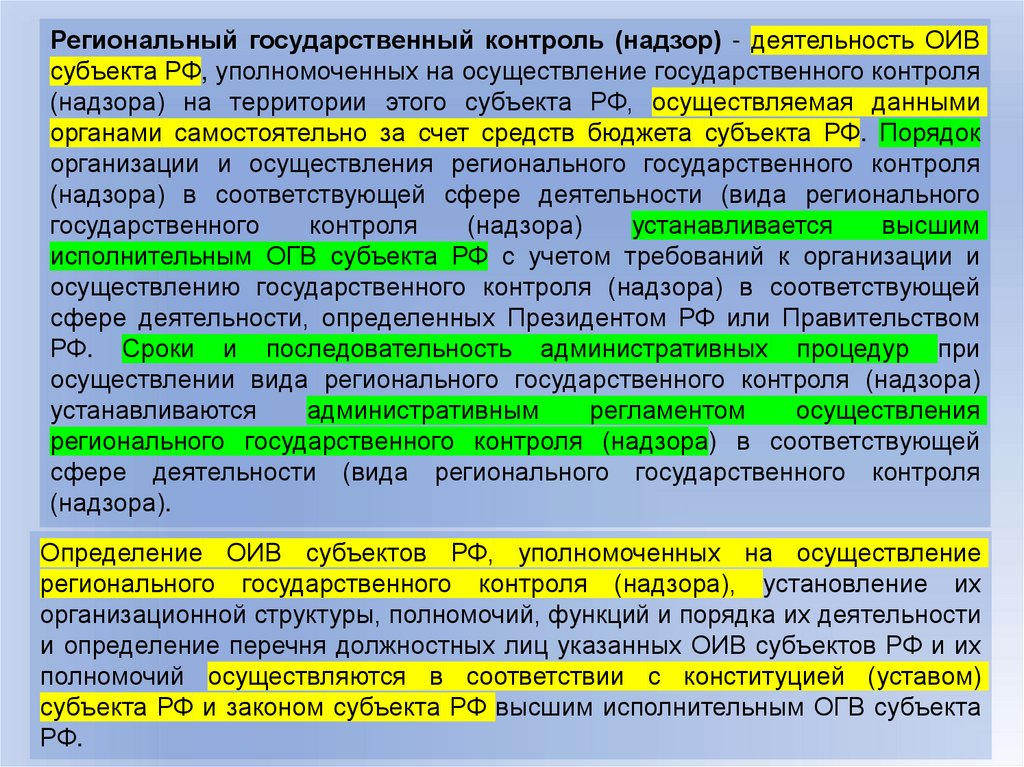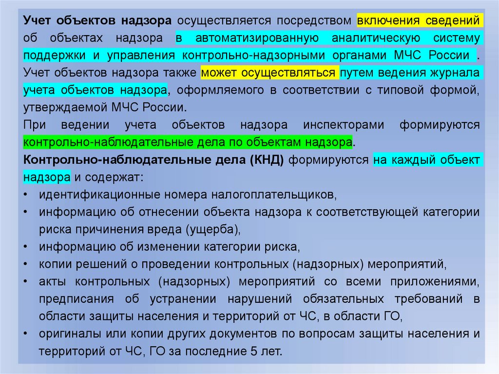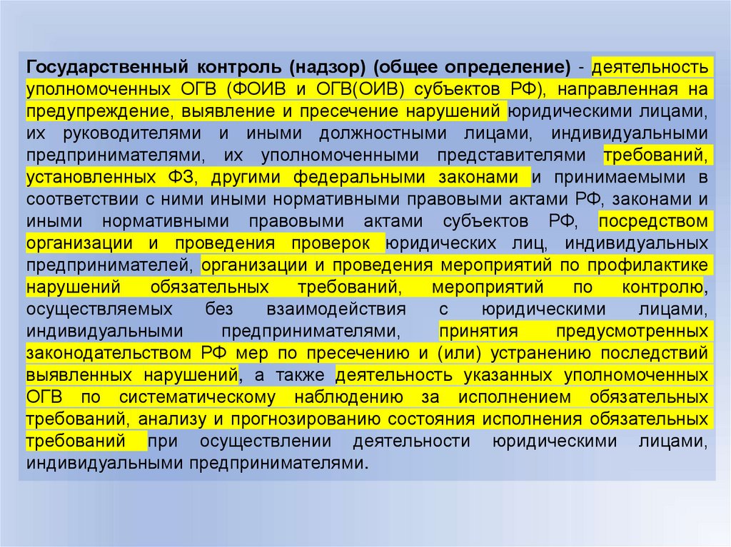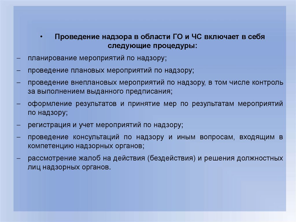 организации и осуществлению надзора и контроля в