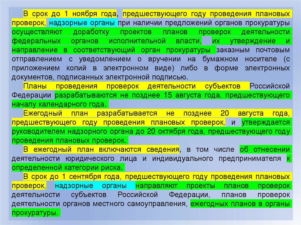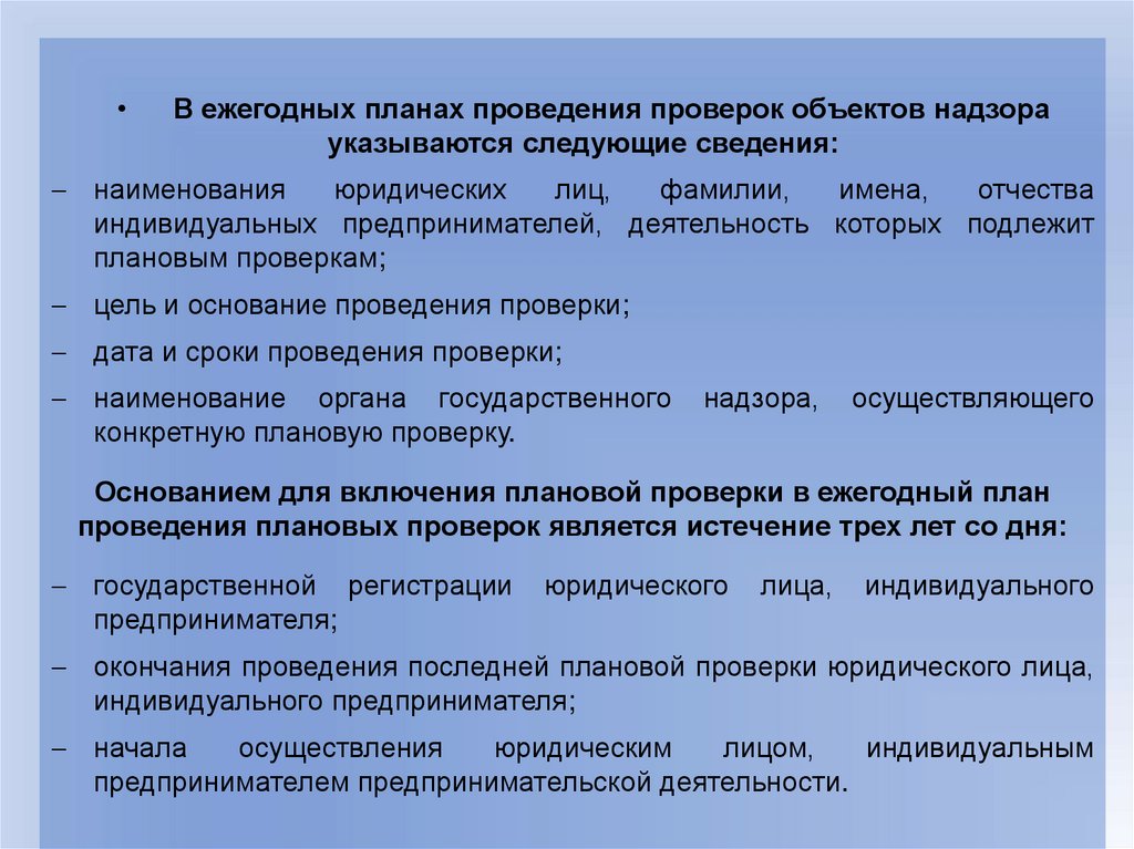 проведения плановых проверок юридических лиц и индивидуальных
