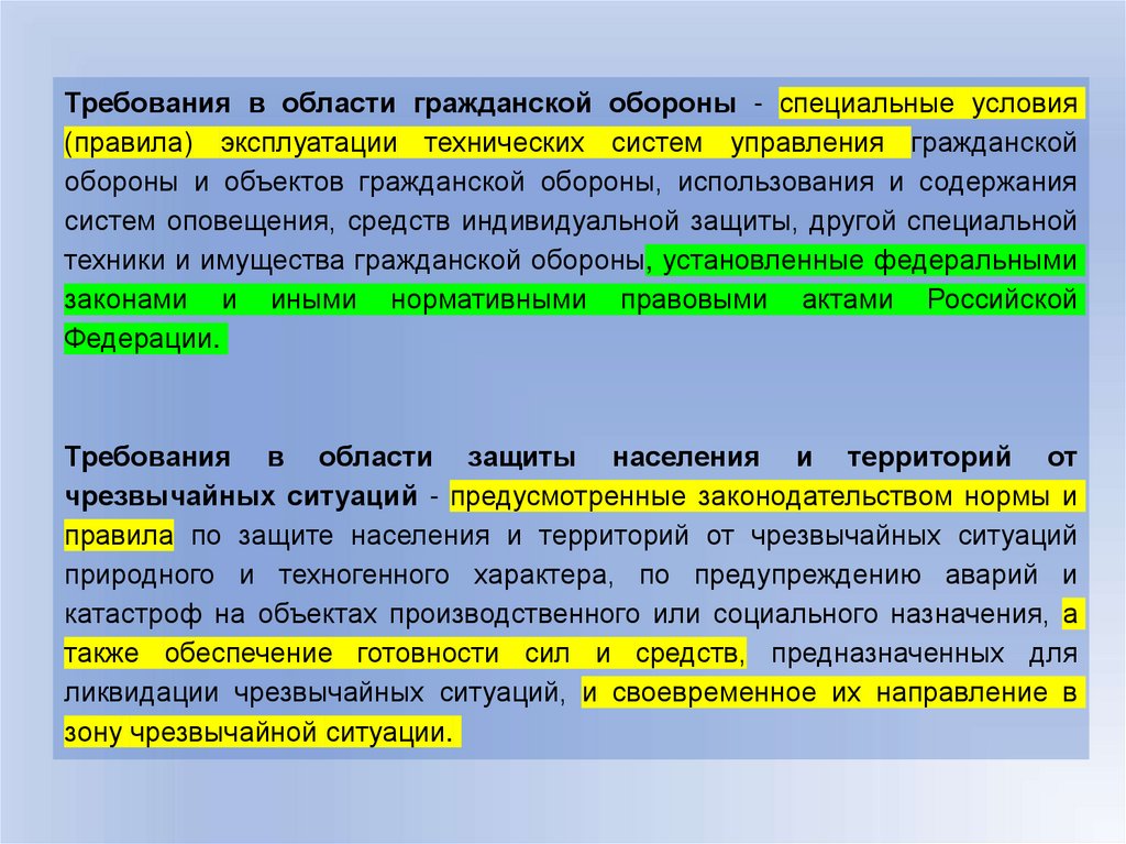 требований в области защиты населения и территорий от чрезвычайных