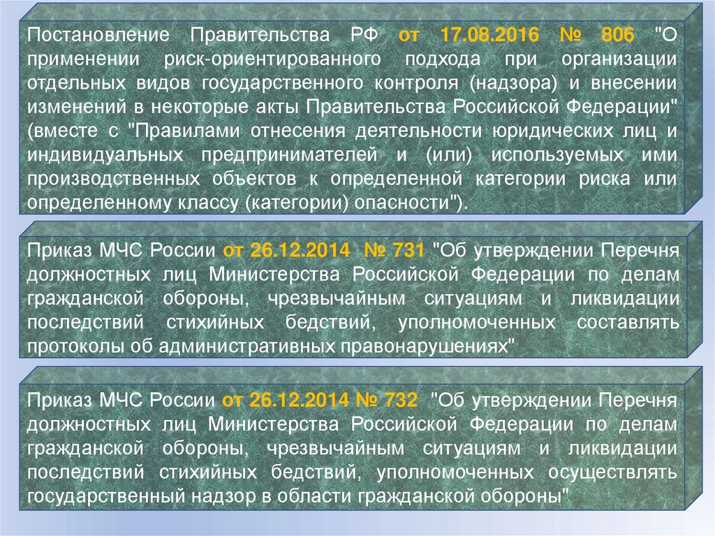 Постановление Правительства РФ от 17.08.2016 № 806 "Оприменении риск-ориентированного подхода при организации