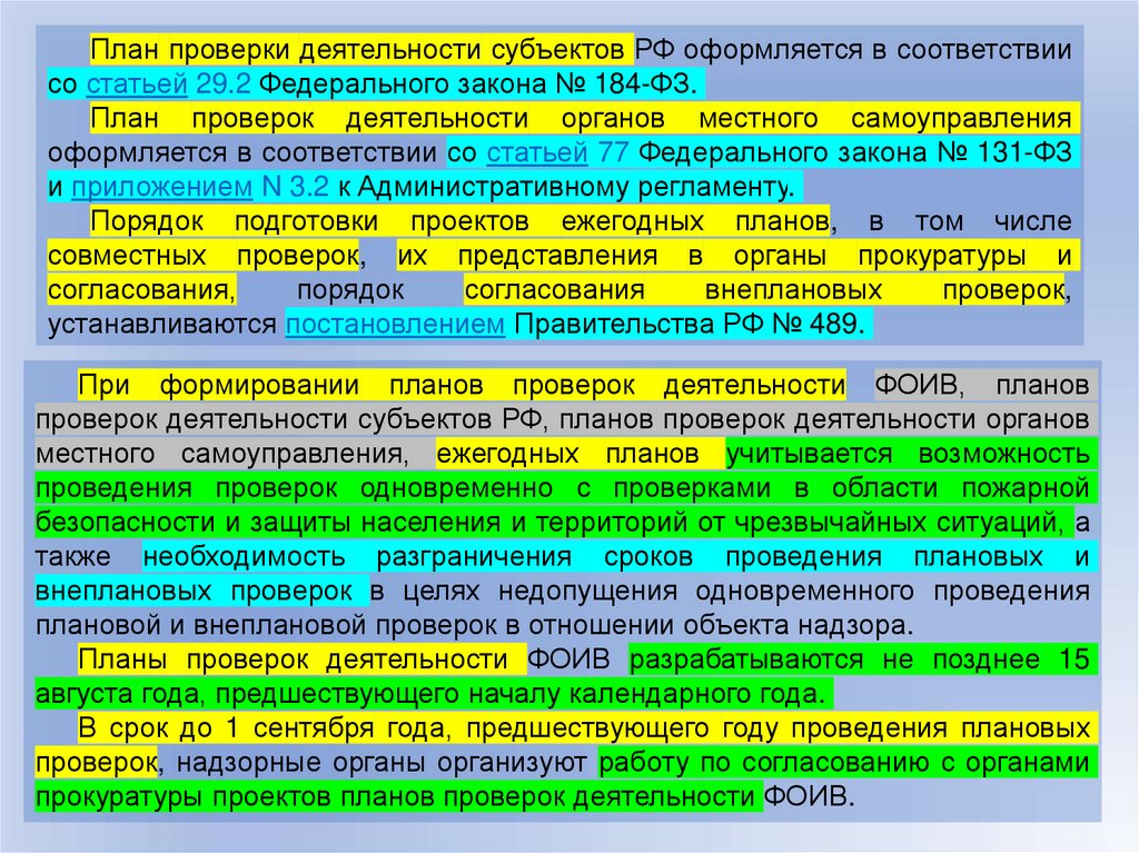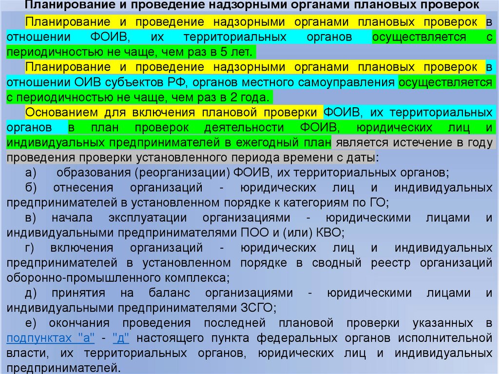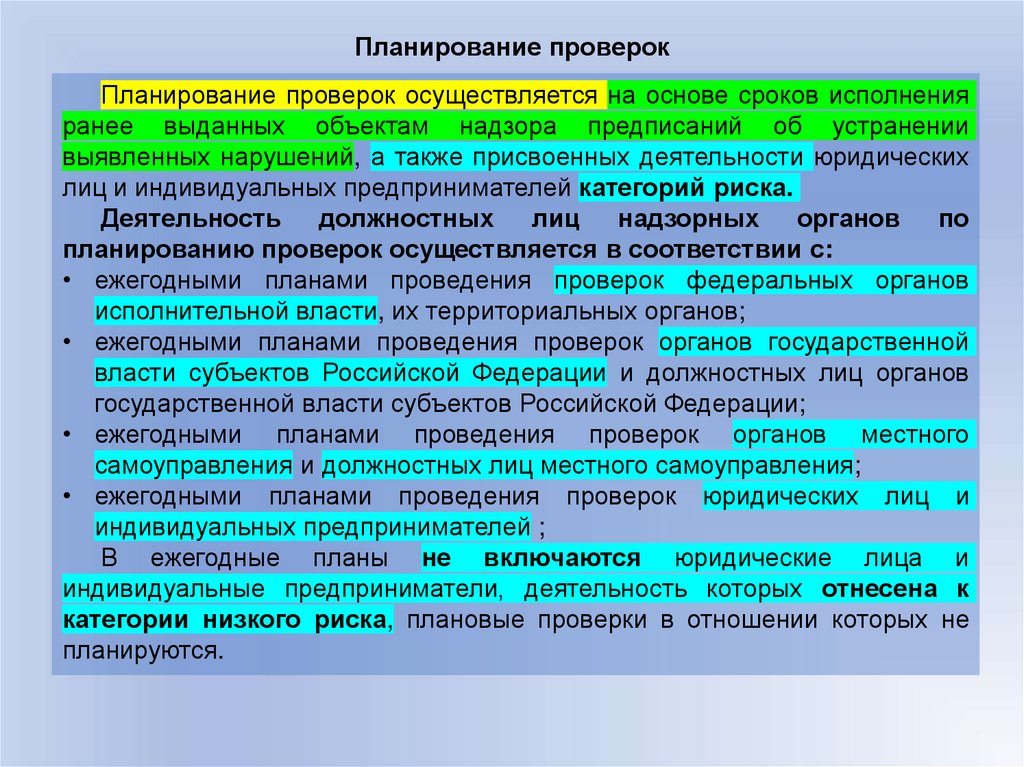 Планирование и проведение надзорными органами плановых проверокПланирование и проведение надзорными органами плановых проверок в